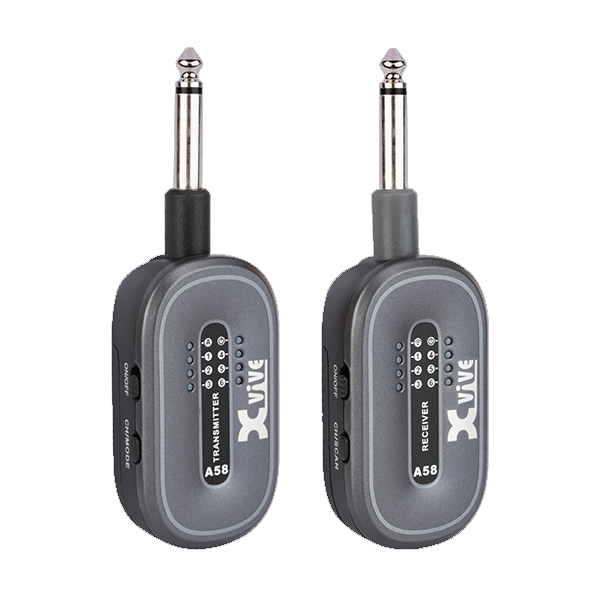 The A58 is a wireless guitar (or bass / electric-instrument) transmitter‑/receiver system from XVIVE. It uses the 5.8 GHz band (rather than the more common 2.4 GHz), which helps reduce interference from Wi-Fi, Bluetooth, etc. It’s aimed at gigging musicians, practice setups, rehearsal, or small‑to‑medium live stages, offering good sound quality, manageable latency, and solid build