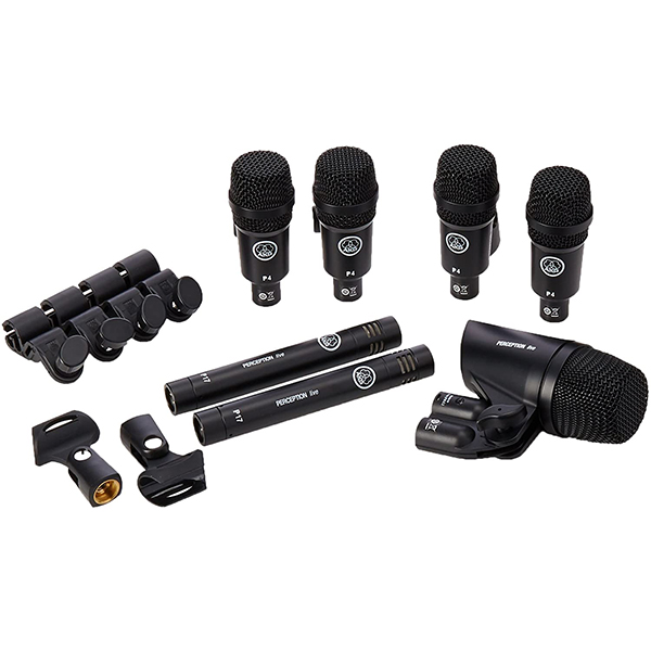 A high-resolution drum microphone system and the best all-in-one starter kit that offers an outstanding balance of performance and value is the Drum Set Session I. It offers all the necessities required to catch a full drum kit, with seven microphones and accessories packaged in a sturdy aluminum carrying case. It can also be used for drums, bass, and guitar amplifiers, brass, woodwinds, and other instruments for miking. Both microphones are from the Perception Live series and feature a sturdy metal shell, a powerful microphone grill in spring steel, a scratch-resistant finish, and high SPL capability. The package includes a 1 x P2 bass drum mic, 2 x P17* for overheads, and 4 x P4 for snare and toms. *The P17 is similar to the P170 functionally and is not usable as a single unit.