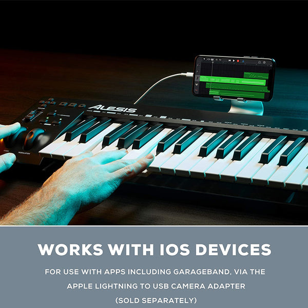 When the melody hits you and it’s time to make music, you can’t afford to pick the wrong tool for the job. You need the Alesis Q49 MKII, a no-nonsense MIDI controller with 49 full-size, velocity-sensitive, synth-action keys. This USB bus-powered MIDI controller has everything you need to make your performance unique – Octave and Transpose buttons for accessing the full piano range, Pitch Bend and Modulation wheels for added expression, and Transport buttons to control key functions of your favorite software or DAW. For added expression, there’s also a Sustain Pedal input and a re-assignable slider for quick parameter control. Plugin the Q49 MKII and immediately turn your PC, Mac, or iOS device into the MIDI production tool you need.