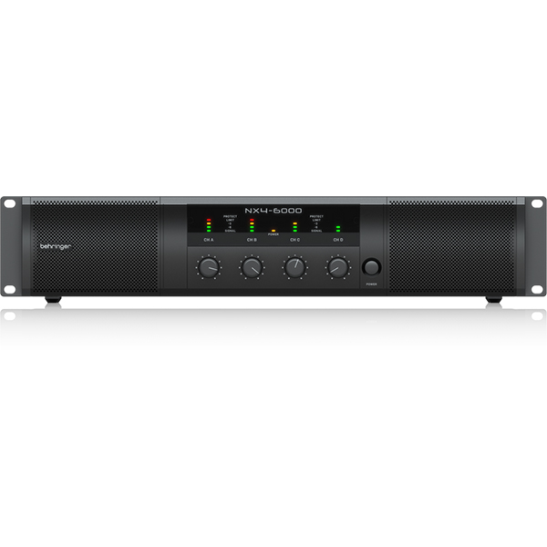 Designed for flexible operation, the NX4-6000 features selectable dual mono, stereo, and bridge modes, plus a built-in crossover for Full-Range or Bi-Amp setups—perfect for subwoofer and full-range loudspeaker configurations. With detented gain controls, signal and limit LEDs, professional XLR/TRS combo inputs, and twist-lock speaker outputs, setup is fast, easy, and secure. Lightweight, powerful, and engineered for superior control, the Behringer NX4-6000 is the ideal choice for demanding live sound, touring, and installation applications—delivering premium performance and unbeatable value.