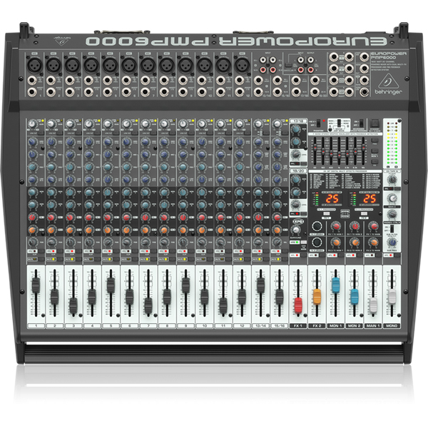 The Behringer EUROPOWER PMP6000 is a feature-packed, 20-channel powered mixer that delivers up to 1,600 Watts of massive output power in an ultra-portable, lightweight design. Thanks to revolutionary Class-D amplifier technology and a high-efficiency switch-mode power supply, the PMP6000 offers huge performance with exceptional energy efficiency, reduced heat, and outstanding reliability.