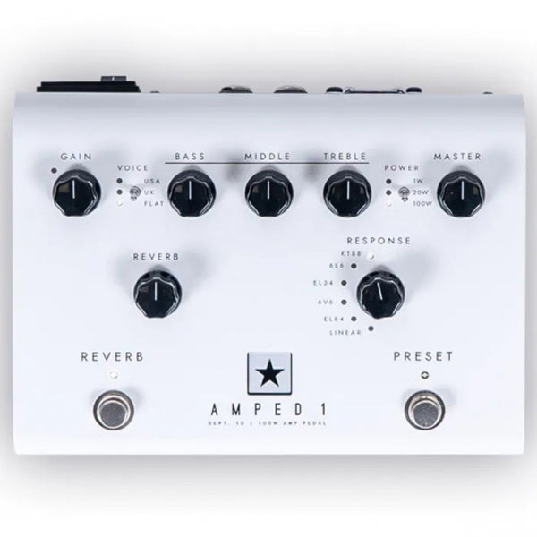 - Response control delivers five distinctly different authentic power valve responses – KT88, 6L6, EL34, 6V6, EL84. Each setting delivers the response, dynamics, sag and break-up characteristics of the selected valve power amp. The Linear response offers transparent power amplification, used in combination with the Flat voice when pairing your AMPED 1 with an external amp modeller.