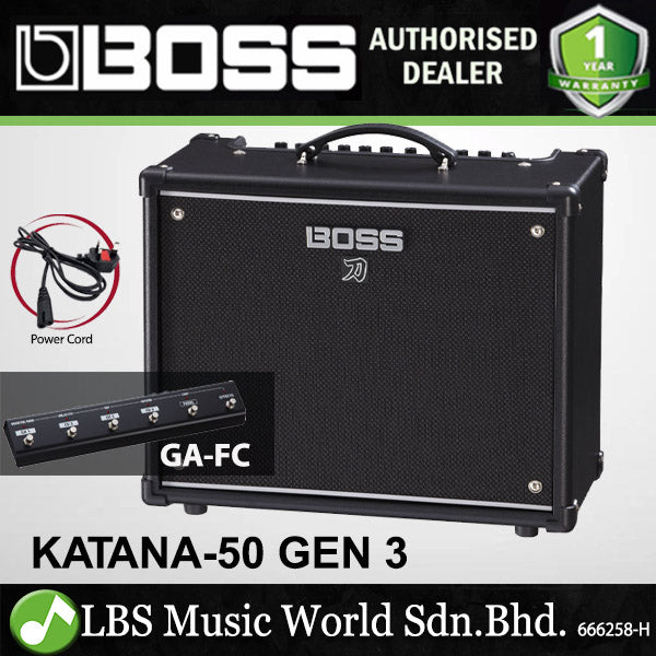 The Katana-50 EX Gen 3 model extends the core features of the Katana-50 Gen 3 with enhancements for live performers. Additions include an upgraded speaker, Line Out and Stereo Expand functions, and GA-FC/GA-FC EX Foot Controller support.