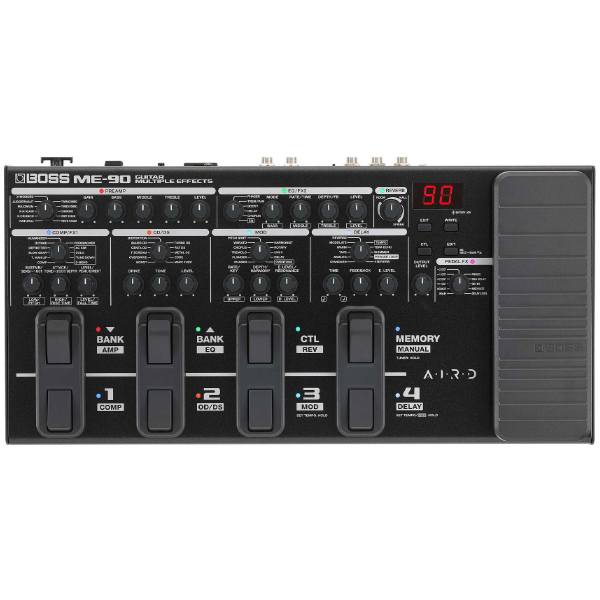 With its knob-driven interface and diverse effects selection, the ME-90 lets you build configurations and tweak tones with the ease of a stompbox-filled pedalboard—without the hassle of fastening tape, power distribution, and multiple connection cables.