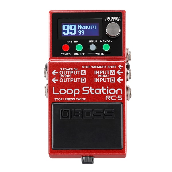 The RC-5 features the most advanced interface available in any compact looper pedal. The LCD lets you keep an eye on loop status as you perform, with a backlight that changes color to indicate recording, overdub, and playback states. And coupled with the multi-function parameter knob, it’s quick and easy to navigate rhythms, kits, system settings, and more in the heat of the moment.