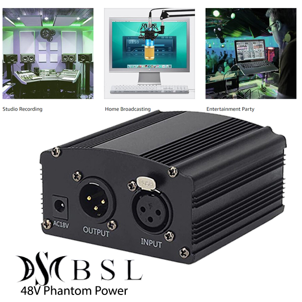 BSL 48V Phantom Power Supply delivers reliable 48V phantom power for condenser microphones in a compact, durable, plastic housing. This allow user to enjoy ultra low-noise audio performance and full-frequency response. Moreover, BSL 48V Phantom Power are construct with high-quality components and rugged construction will ensure this power supply with stand up to the test and perform on all occasions. It also comes with one XLR audio cable with high quality XLR male and female connectors. On/off power switch and LED indicator.