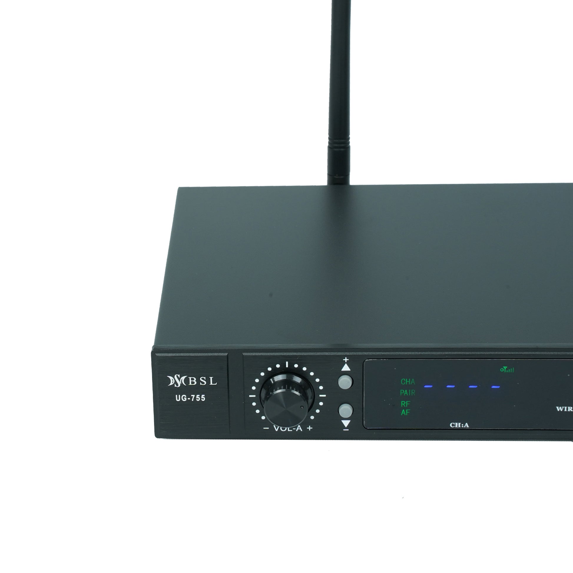 BSL UG755 Dual Lavalier UHF Wireless Microphone System Set with 2 Headset Mic for Head Wear (UG-755)