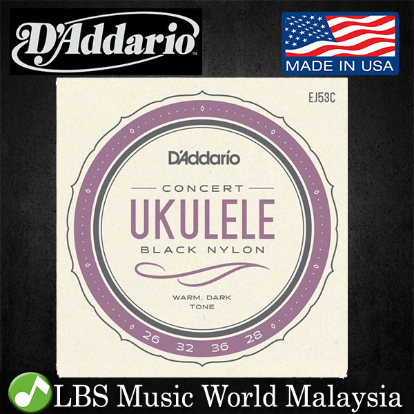 EJ53C is a black nylon string set for concert ukulele. Pro-Arté Black Nylon sets the standard in terms of warm ukulele tone, intonation, and dynamic response. This set is optimized for usage with standard GCEA tuning