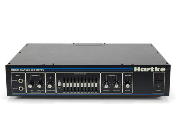 Found on stages all over the world, the Hartke HA5500 bass amplifier is back in classic black. Yet, it retains all the same rock-solid performance and features as the original that have made it one of the most popular bass amplifiers of all time. The HA5500's unique circuitry ensures that every nuance of your bass performance is faithfully reproduced. Featuring two pre-amp input knobs for custom blending of tube and solid state tone and a ten-band graphic EQ, the HA5500 is ideal for the player who wants plenty of power and control. But we don't stop there. A dedicated preset button allows you to set a equalization curve and two fully adjustable contour knobs provide even more shaping of your distinctive sound. A built-in compressor adds real "punch" to your bass sound, and also allows you to smooth out volume differences between notes. Rugged construction and professional features make the HA5500 totally road-worthy. Two independent inputs accommodate both passive and active bass guitars. LEDs show you the settings of the graphic equalizer in low-light environments as well as a two-color LED that continuously shows the status of the compression circuitry in response to your playing. Electronically balanced direct output provides routing signal to professional mixing consoles for both live performance and recording environments. A ground lift switch helps prevent hum or buzz from entering the signal, and a pre/post switch allows the direct signal to be derived either before or after the amp EQ section. With all the features you need for complete tonal control, along with ample power and rugged design, the HA5500 will ensure complete bass euphoria no matter what kind of music you play.
