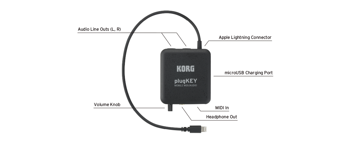 [Discontinued] Korg PlugKey Mobile MIDI Audio Interface for iOS with Lightning Connector (Black)