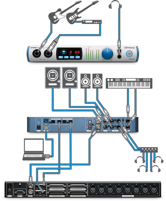 Adding just the right amount of effects and processing to a monitor mix can make a huge difference in a musician’s ability to experience their performance naturally. To that end, the Studio 192 Mobile audio interface includes Studio One Fat Channel plug-in processing on every analog input and the first ADAT inputs, plus a stereo reverb and delay. The result is a better performance and a better recording.