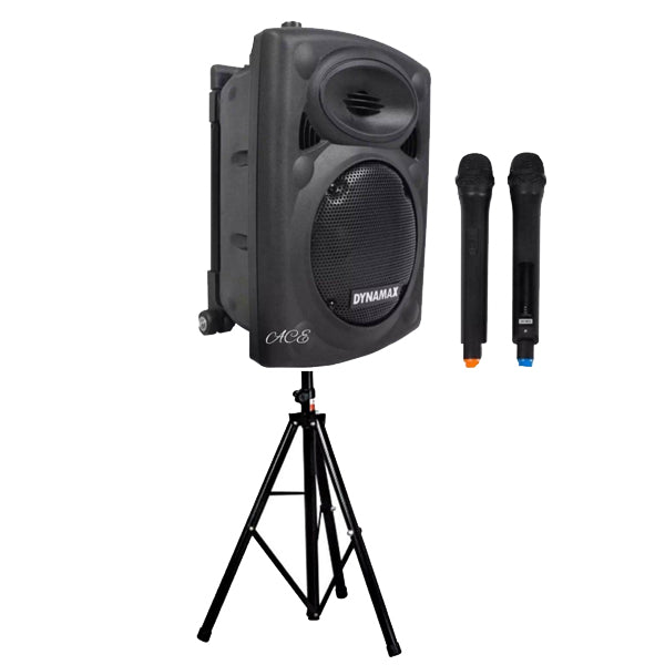Dynamax PRO151D 450 Watt 15 Inch Active Bluetooth Speaker System with 2 Wireless Handheld Microphone