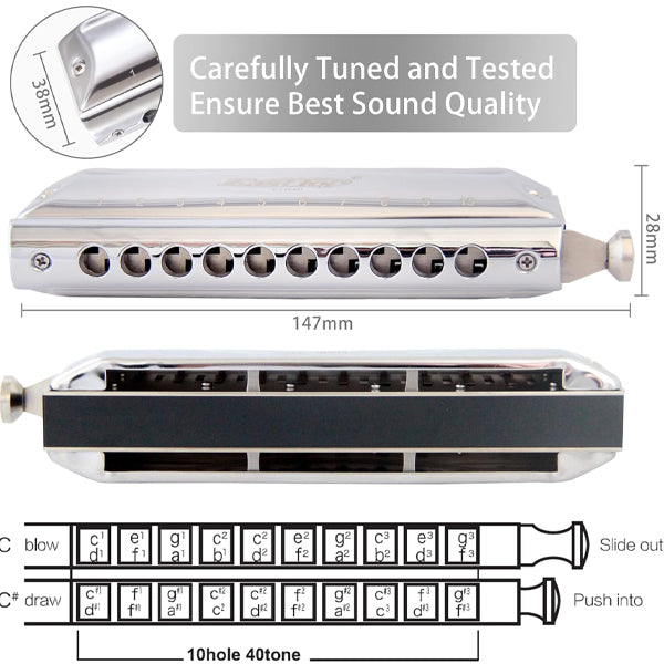 Easttop T1040-C 10 Holes 40 Tones Professional Chromatic Harmonica - C Key (T1040)