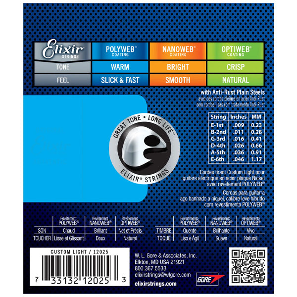 Elixir 12025 Polyweb Electric Guitar Nickel Plated Steel Custom Light (9-46)