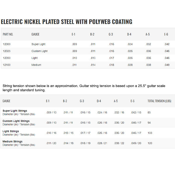 Elixir® Electric Nickel Plated Steel Strings with POLYWEB Coating deliver their own distinct warm tone together with extended tone life.