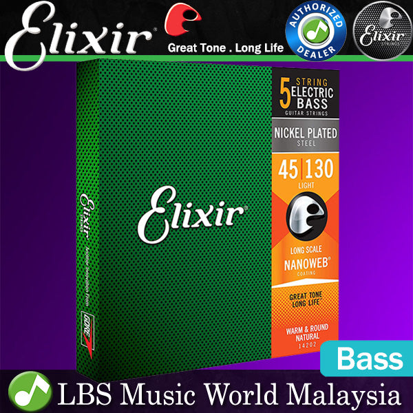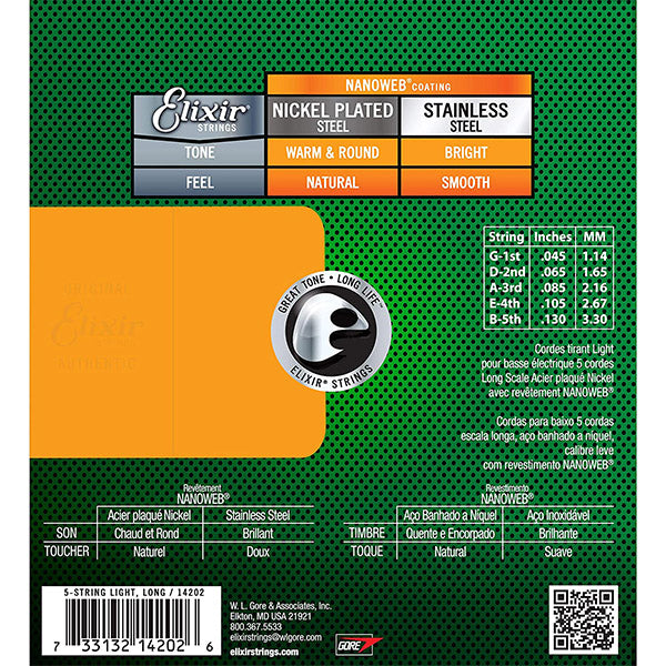 Elixir 14202 Nanoweb 5 String Electric Bass Guitar Nickel Plated Steel Long Scale (45-130)