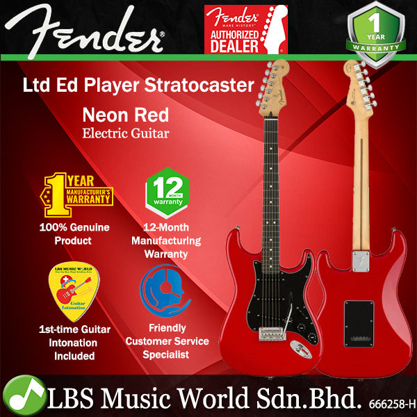 Fender Mexico Ltd Ed Player Stratocaster Electric Guitar with Ebony Fingerboard ,SSS Pickup and Tremolo - Neon Red (Limited Edition)
