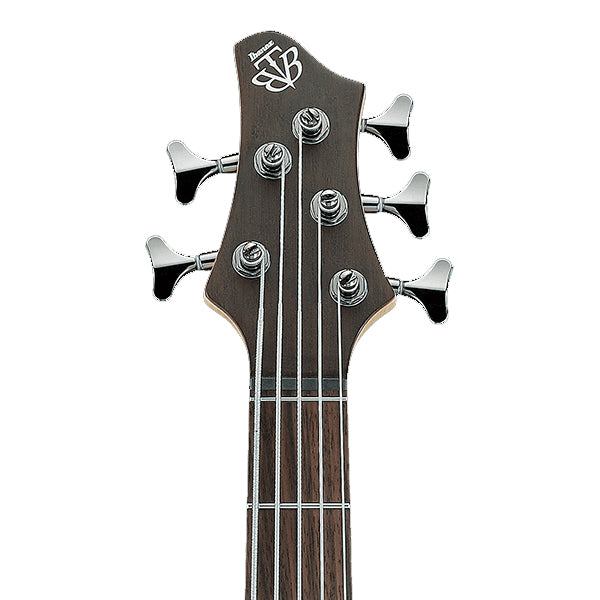 The BTB605-TGF's extended 35-inch scale length enhances low-end clarity, making it particularly effective for the low B string. The combination of okoume body wings and a poplar burl top contributes to a warm, resonant tone with visual appeal. The neck-through design ensures excellent sustain and smooth access to upper frets, while the rosewood fingerboard offers a comfortable playing surface. Equipped with Ibanez's Custom Electronics, the BTB605-TGF provides a 3-band EQ with a 3-way mid-frequency switch, allowing for precise tonal shaping. The EQ bypass feature offers passive tone control via the treble knob, giving players flexibility between active and passive tones.