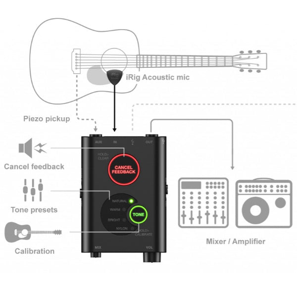 iRig Acoustic Stage can also be used as USB recording interface for Mac/PC, iOS, Android.
