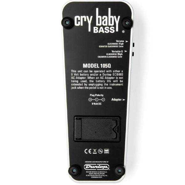 The first wah pedal was designed by bass players for bass players. The 105Q incorporates a proprietary potentiometer and custom EQ circuitry specifically optimized for bass frequencies. The Cry Baby Bass Wah applies the wah effect to the mids and highs only, leaving a strong fundamental to hold down the bottom so you can take solos or throw in fills without ever disturbing your low end.