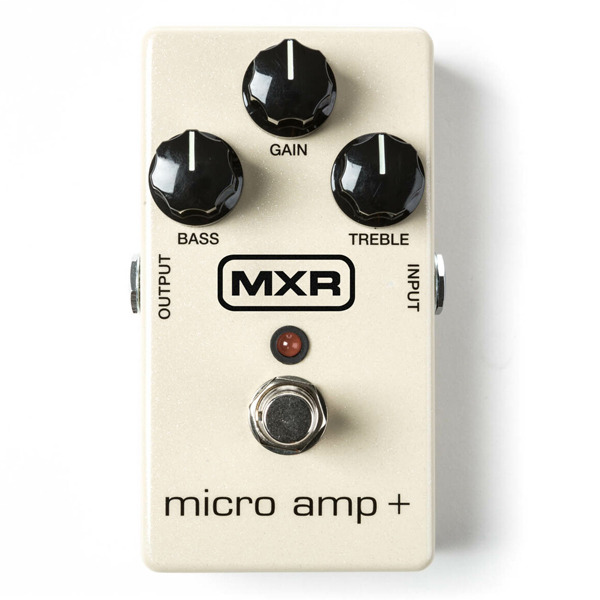 For more than 20 years, the MXR Micro Amp has been a staple among the world’s top artists because of its ability to boost and sweeten up your guitar or bass tone and drive the front of your amp. The Micro Amp+ builds on that classic pedal with EQ controls and other upgrades that take this powerful boost box to the next level. With its Gain knob, the Micro Amp+ allows you to dial up just as much gain as the original up to +26dB but with added EQ controls, you can now finely sculpt your boosted signal. For the classic Micro Amp sound, set the Bass and Treble controls to noon. Additionally, the Micro Amp+ now comes equipped with low-noise op-amps so you don’t get any extra noise at super high levels and true bypass switching. With the sturdy housing and durable components that MXR is known for, this pedal is ready for the road.