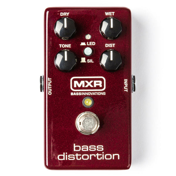 Finally, the MXR® Bass Distortion's raunchy sound comes in two flavors, selectable via the LED/SIL switch. The default SIL setting uses silicon clipping diodes for an aggressive, biting sound and a bit of compression, while the LED setting uses LED diodes for a more wide-open sound and a nice gain bump.