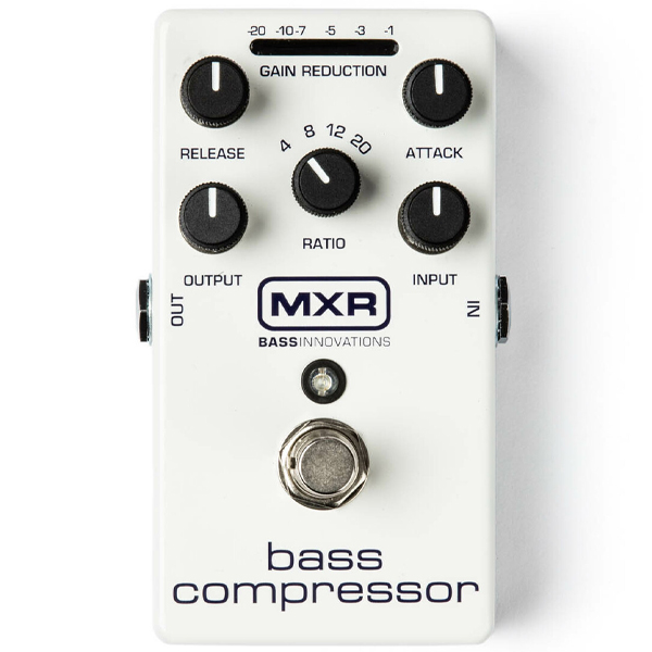 Take your favorite studio compressor to the stage with the MXR Bass Compressor. A complete array of controls—Attack, Release, Ratio, Input, and Output—makes it easy to fine-tune your sound, from subtle peak limiting to hard squashed compression effects. Its CHT™ Constant Headroom Technology gives you plenty of headroom and clear performance. This totally transparent compressor allows your full dynamic range to shine through until your signal reaches the compression threshold, which is indicated by the ten, highly visible gain-reduction status LEDs. It’s all packed into a durable, lightweight aluminum-housing pedal that’s the size of Phase 90.