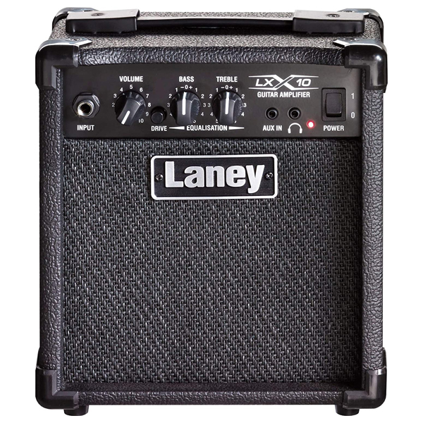 The LX10 is a compact, simple to use practice amplifier delivering great Laney tone for electric guitar. With a 5” driver and 10 watts RMS the LX10 is a mini tone monster. The LX10 allows you to find legendary Laney sound at a very modest price. Ideal for a beginner, the LX10 features a simple-to-use preamplifier with volume control and 2-band EQ. A Drive switch quickly adds overdrive. The mini-jack AUX input allows for the connection of a playback device such as MP3/iPod/CD for jamming along to songs or backing tracks, plus there is a headphone socket – a great feature for private practice or silent late-night sessions.