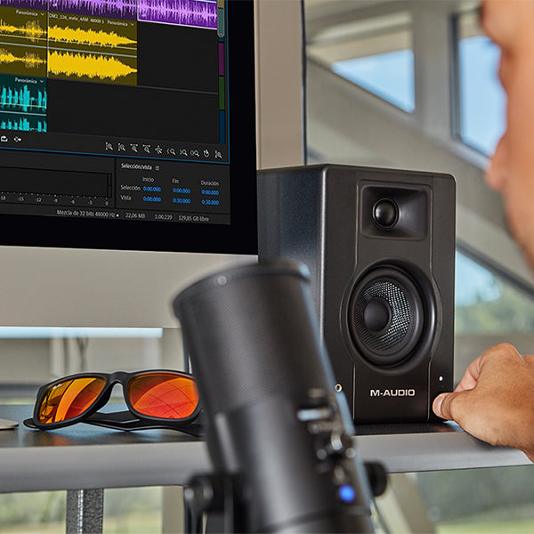 M-Audio BX3 BT Bluetooth®-enabled multimedia reference monitors deliver professional sound in an attractive compact design. Engineered for a pristine listening experience with the flexibility to stream music and audio from any Bluetooth® device, BX3 BT monitors have the latest Bluetooth® technology combined with rich studio-quality sound.