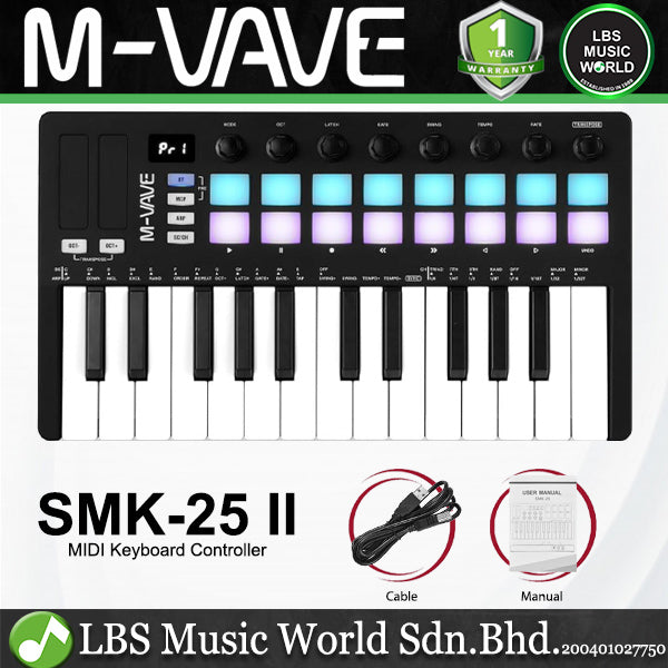 M-VAVE SMK-25 II 25 Keys Midi Keyboard Controller with Built In Battery and 16 RGB Pads (SMK25 SMK 25)