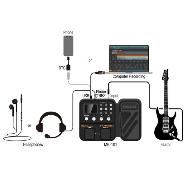 The NUX MG-101 transcends the boundaries of a mere effects processor; it's a gateway to your musical expression, catering to the demands of today’s digital landscape. The MG-101 embraces the world of live streaming, effortlessly connecting to your phone via USB. All you need is an OTG adapter and you’re all set!