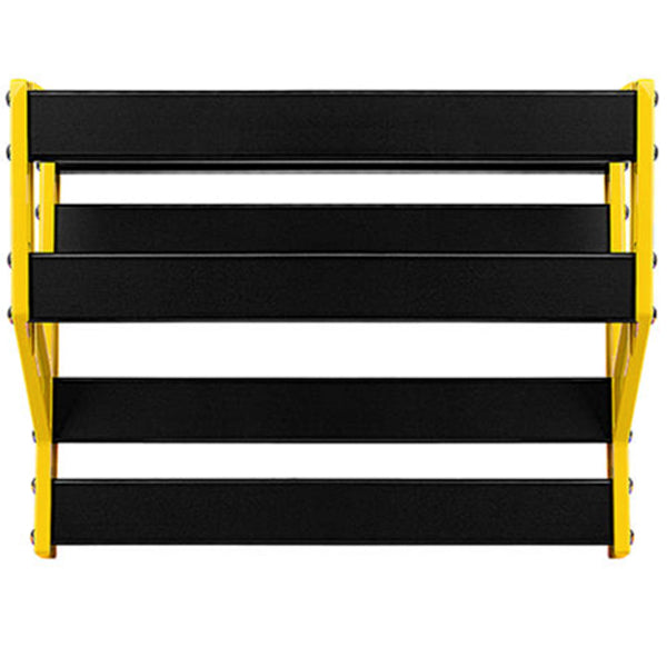 NUX Bumblebee is made by anodized aluminum material; which is "solid as a rock, light as a pillow". The bottom of the platforms are carved and well-supported, and gives you some space to cover your cables without losing any strength. And the side parts are strongly holds all the parts together, it can absorb the shock when you hit your pedal footswitch.