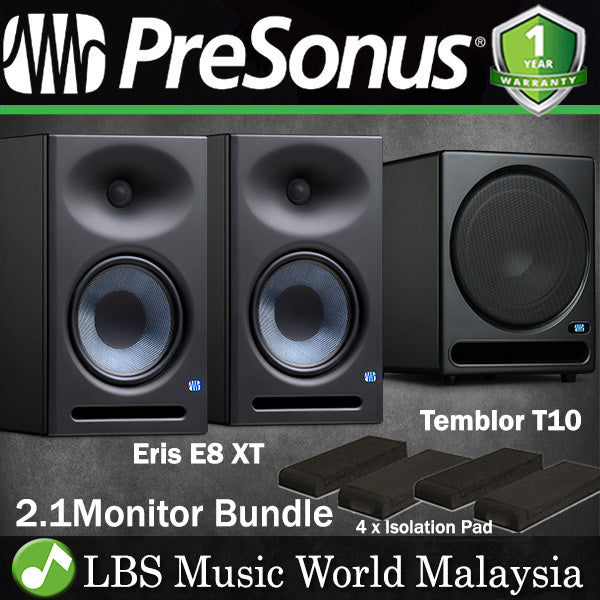 PreSonus Eris E8XT Powered Studio Monitor Pair with Temblor T10 Subwoofer Speaker (E8 XT)