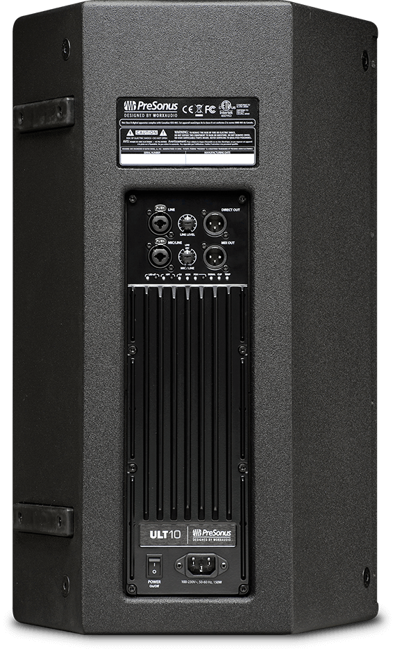 The ULT10 is supplied with more than enough power and I/O to handle a wide variety of applications and environments. Its 10-inch woofer is driven by a 500W (continuous), Class D power amp, while the 1.75-inch Pivot X110 horn receives 150W. (Peak power is rated at 1,000W and 300W, respectively.) You get two combo XLR and ¼” TRS inputs: a mic/line input with PreSonus’ acclaimed XMAX™ mic preamp and a line-level-only input. The inputs have independent level control, allowing up to two audio sources to be mixed internally and summed to a balanced XLR output for "daisy-chaining" multiple units. A separate direct output for the line input channel provides additional flexibility.