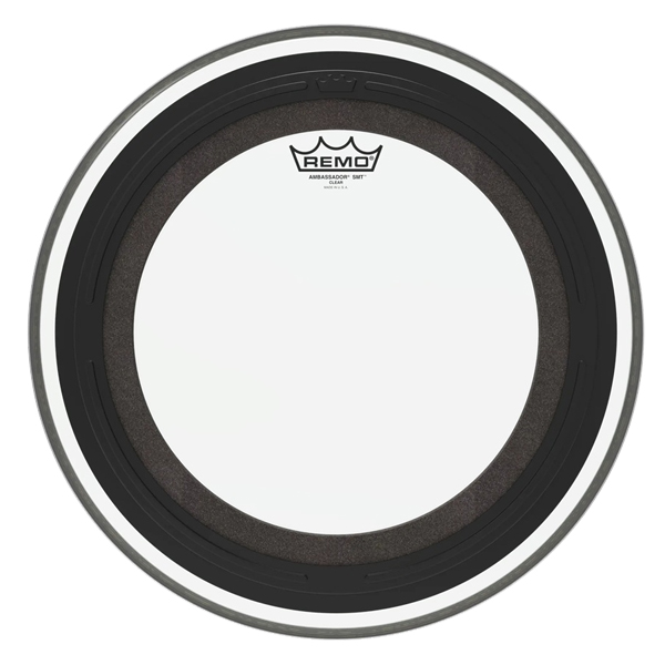 The Ambassador® SMT™ Clear bass drumhead is a pre-muffled design featuring Sub Muffl® Technology. It is constructed with a Coated 10-mil single-ply film, and an externally mounted dampening profile with free-floating acoustic foam. It enables the head and drum shell to maintain full sound characteristics with additional attack and low-end frequencies. SMT technology allows a broad tonal spectrum of tuning ranges with controlled high and mid frequencies coupled with deep, powerful low tones. It is a new industry standard and one of the market's most musical and versatile pre-muffled bass drumheads. Ideal for live and recording applications.