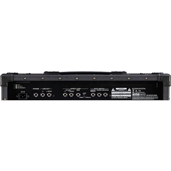 The JC-40’s rear panel is filled with connectivity options. There’s an effects loop for patching in mono or stereo effects, and you even have your choice of serial or parallel operation. Line Out jacks give you a convenient mono or stereo feed to a mixing board or recorder, while the headphones jack is great for quiet practicing with your setup late at night or on the road. There’s also support for optional footswitches, allowing you to easily turn the JC-40’s chorus/vibrato, reverb, and distortion effects on/off while performing.
