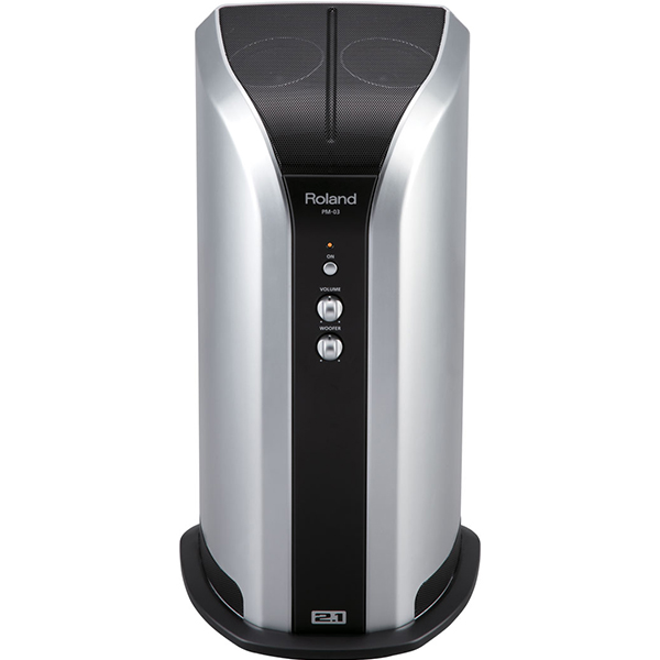 The newest addition to the V-Drums personal-monitor family is the PM-03. Slim and stylish, this space-saving monitor adds a new dimension of sound for V-Drummers — it’s the first 2.1-channel monitor in the PM series, providing a clean, clear stereo image, plus low-frequency coverage. From thunderous lows to sparkling highs, the PM-03 will enhance your personal V-Drums sessions with full-frequency impact. It’s the perfect match, aesthetically and aurally, for Roland’s HD-series V-Drums, but all electronic drummers can plug into the PM-03 as well.