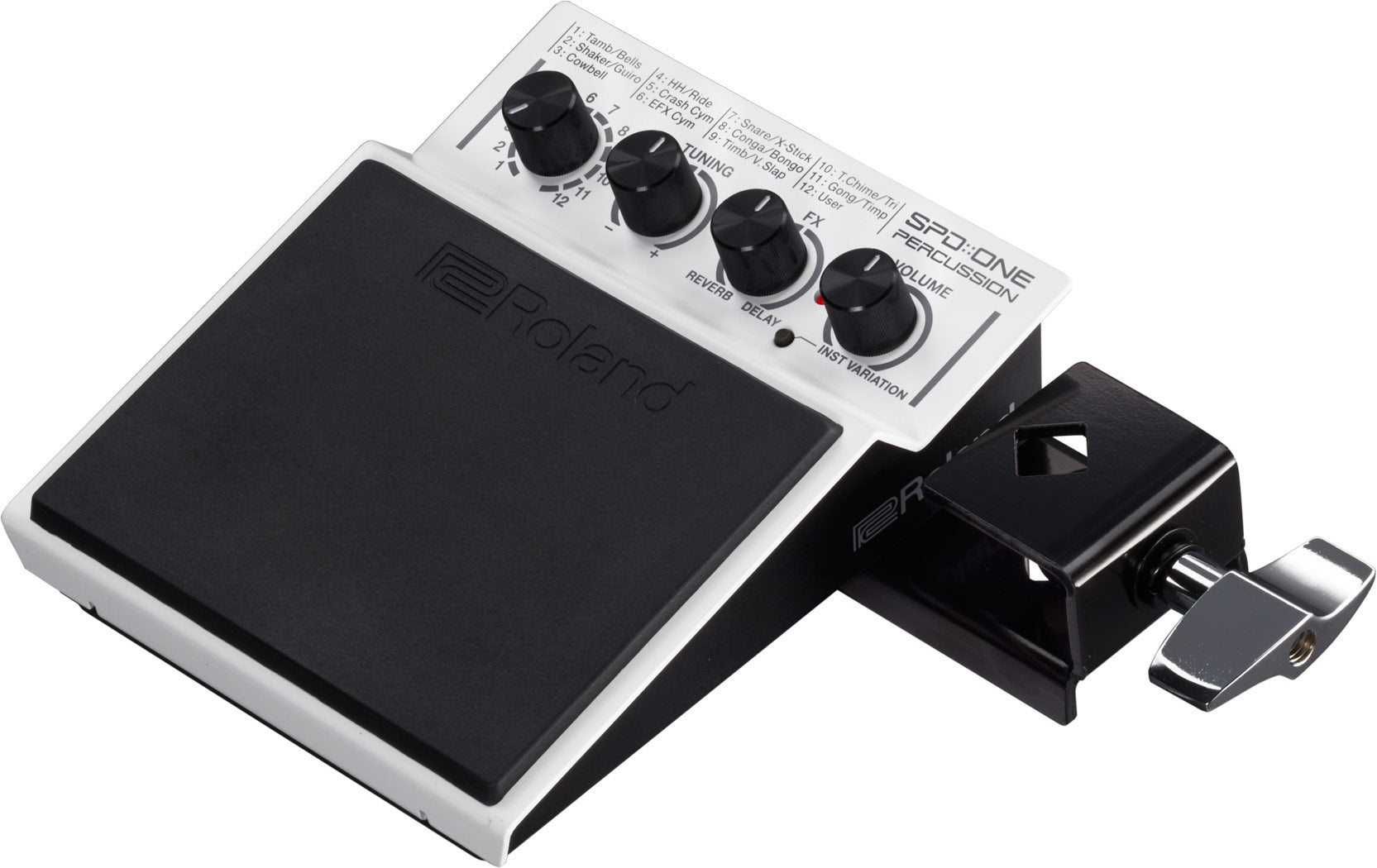 Powered by batteries or AC, the portable SPD::ONE PERCUSSION can be used on the floor or a tabletop, or mounted to any rig or drum setup with the included adapter. Operation is simple, even for those musicians who are not technical; just by using four knobs on the control panel, you can change the sound, volume, balance, and more. Whether you’re a drummer, percussion player, guitarist, DJ, or vocalist, the SPD::ONE PERCUSSION is a simple and flexible way to expand your sound palette and invigorate your performances.