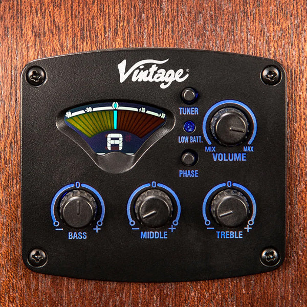 Looking the part with its historic routesy, bluesy, visual foundation, the Vintage Statesboro’ Whisky Sour finished electro-acoustic, is an excellent performer in both live and studio environments, ideal for all music genres from jazz to pop, blues to rock.
