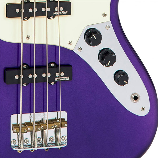 This classic design bass is a true workhorse. Featuring two Wilkinson WOJB pickups and Wilkinson designed bridge and machine heads, the V74 is a perfect bass for practically any style of music. An ash body is matched to a hard maple neck and the fingerboard has traditional dot markers.