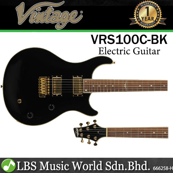 Vintage VRS100C Rock Series Eastern Poplar Body Neck Thru HH Pickup Electric Guitar Gloss Black (VRS 100C)