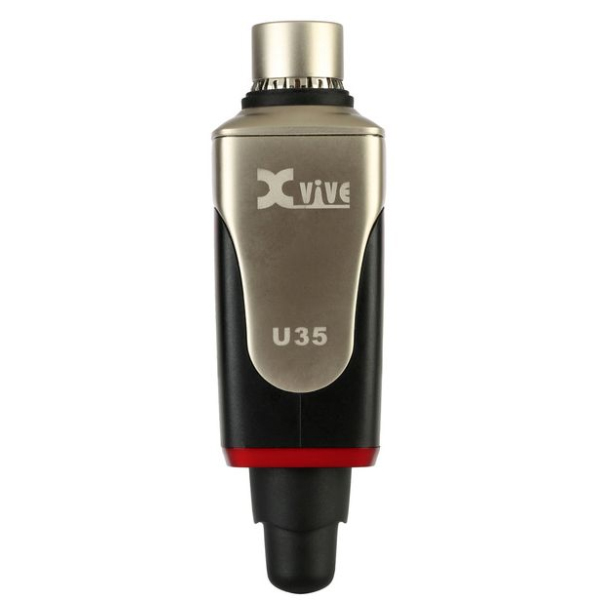 The Xvive U35T is a compact plug-on wireless transmitter designed to convert dynamic microphones into wireless units. Operating on the interference-free 5.8 GHz ISM band, it delivers high-quality 24-bit/48 kHz audio with a frequency response of 20 Hz – 20 kHz and a dynamic range of 110 dB. With a latency under 5 milliseconds, it ensures real-time audio transmission suitable for live performances and studio settings.This transmitter features a rechargeable lithium-ion battery offering up to 5 hours of operation and supports USB charging. Its compact dimensions (3.9" x 1.2" x 1.1") and lightweight design (3.3 oz) make it highly portable and easy to integrate into various setups. The U35T is compatible with dynamic microphones and includes a mute function for added control during performances.