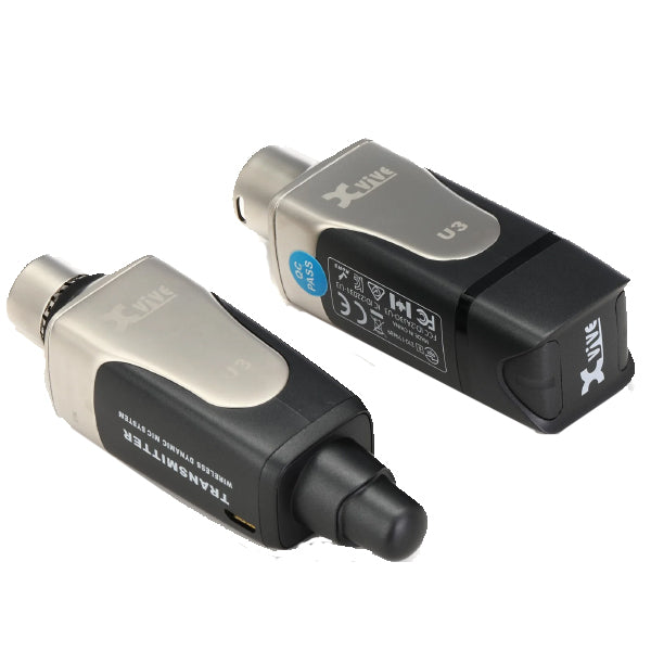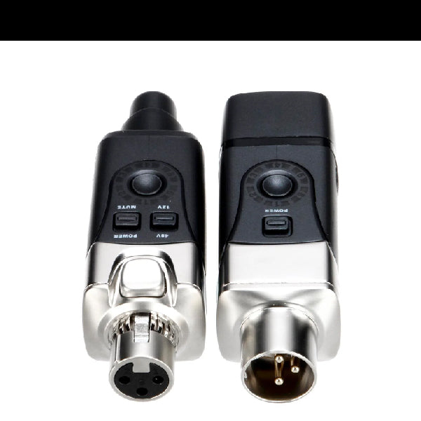 - Plug-on wireless adapters for stereo PA/DJ or dual XLR dynamic microphones