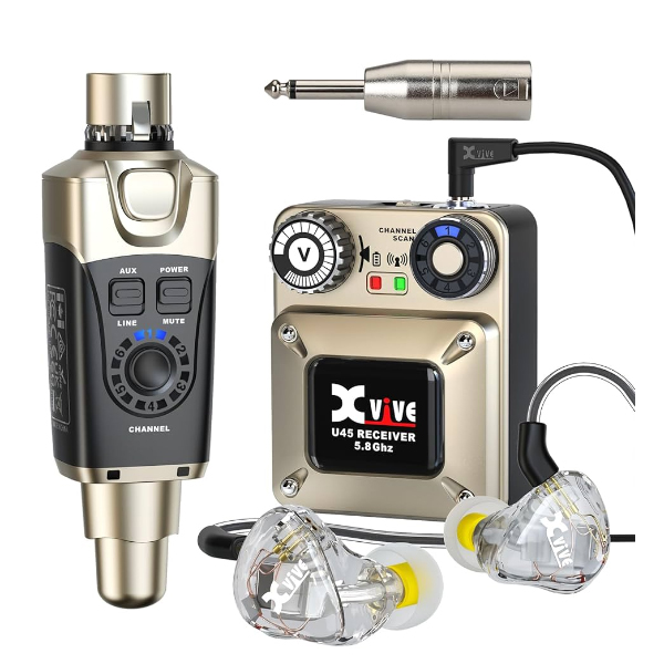 Experience unparalleled freedom onstage with the Xvive U45T9 wireless in-ear monitoring system. Simply connect the plug-on transmitter to a line-level monitor mix from a return on your stage snake, mixer, music player, or computer. Then, plug the included T9 earphones into the compact bodypack receiver. The U45T9 boasts outstanding sub-5ms latency, 24-bit/48kHz sound quality, and a stunning 110dB signal-to-noise ratio. Additionally, it offers five hours of battery life and over 100 feet of wireless range. With six channels, you can deploy multiple units in the same area, and since it operates in the 5.8GHz band, it’s usable anywhere in the world. Moreover, the large Volume knob allows for easy adjustments without needing to look down. Suitable for singers, drummers, guitarists, videographers, and presenters, the U45T9 is highly recommended for rehearsals, live performances, public speaking, and video productions in smaller venues.