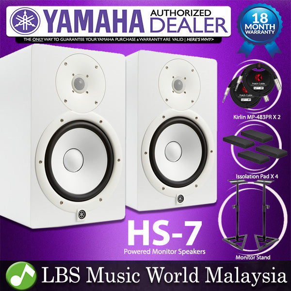 Yamaha HS7 6.5" Powered Studio Monitor Speaker Cabinet 95W with 6.5" Cone Woofer - White (Pair)