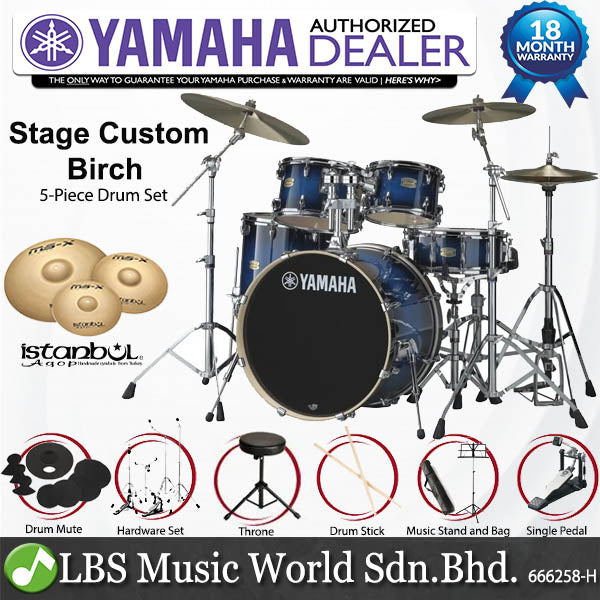 Yamaha SBP2F5 5 Piece Stage Custom Birch Acoustic Drum Set with Cymbal Package - Deep Blue Sunburst