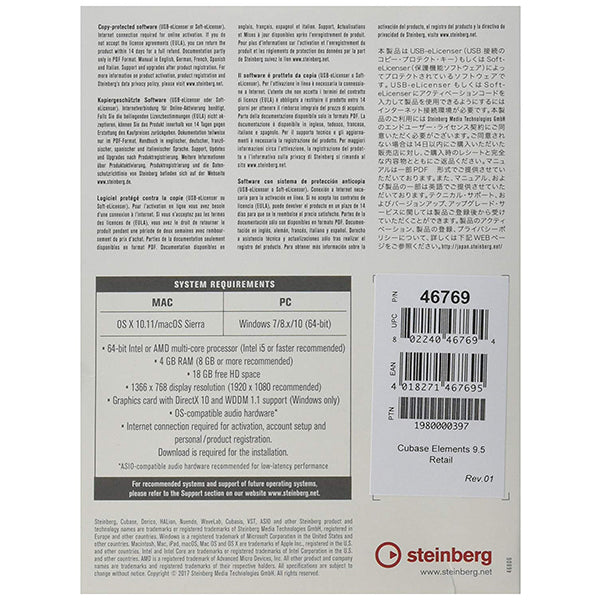 Yamaha Steinberg Cubase Elements 9.5 Studio Recording Software *Indent Basis (PC / MAC)