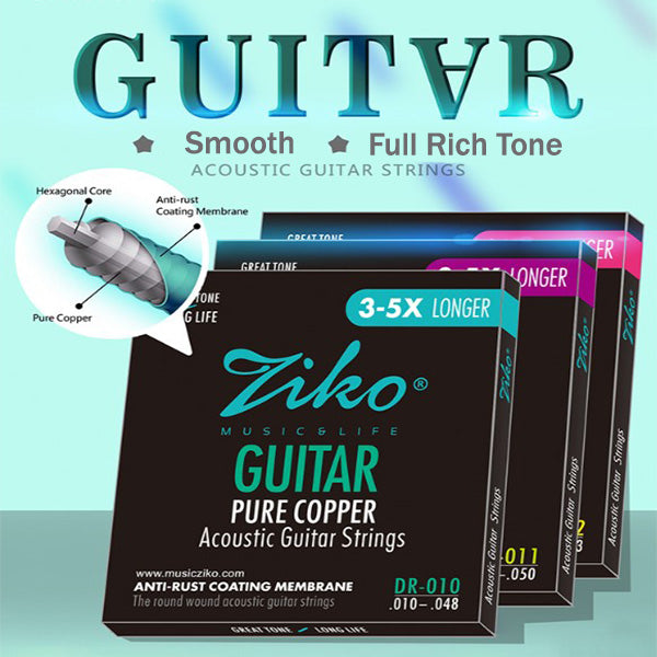 Ziko DR-012 Acoustic Guitar String Anti Rust Coated Pure Cooper Normal Gauge (12-53)